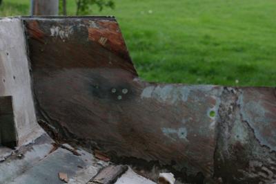 This is actually the only ROTTEN section I found, the rest was simply delaminated and had the potential to go rotten. When I started to clean up the edge of this to make a place to bond the lower section to, I found I could just keep pulling wood away from it. Too much for me to trust CPES or anything else.