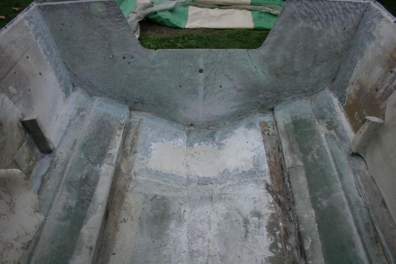 I was hoping to just treat the wood strips along the hull and then reglass over them but when I started cleaing them up I found there was rot in a few places and they are still very wet. So, out they came. They were not in good shape as the next pic will attest.