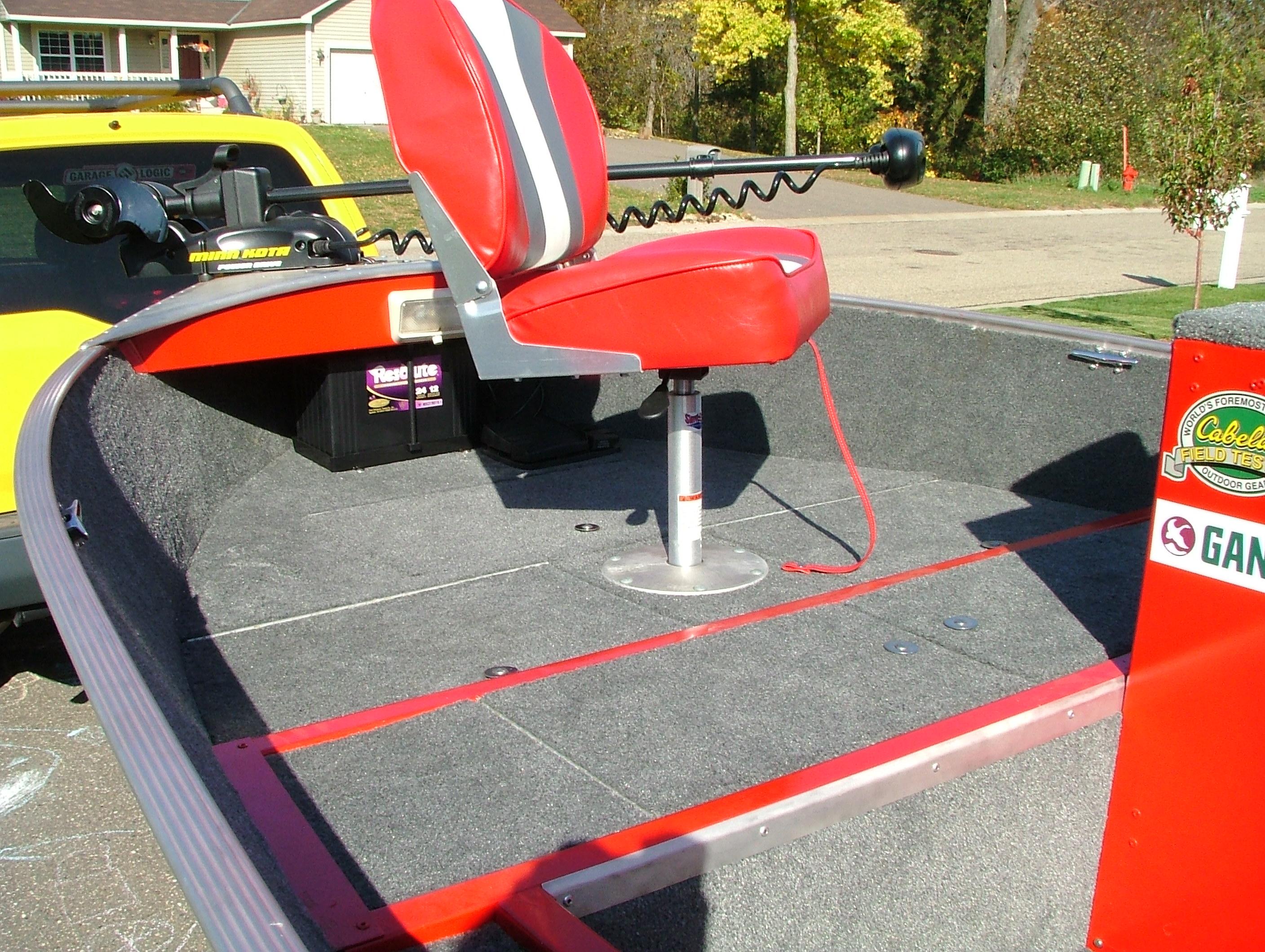 A better view of the front casting deck. Under the nearest two hatches is the live well and the rest is storage. You can also see the new trolling motor I installed. It's a 55pd remote steer MinnKota.