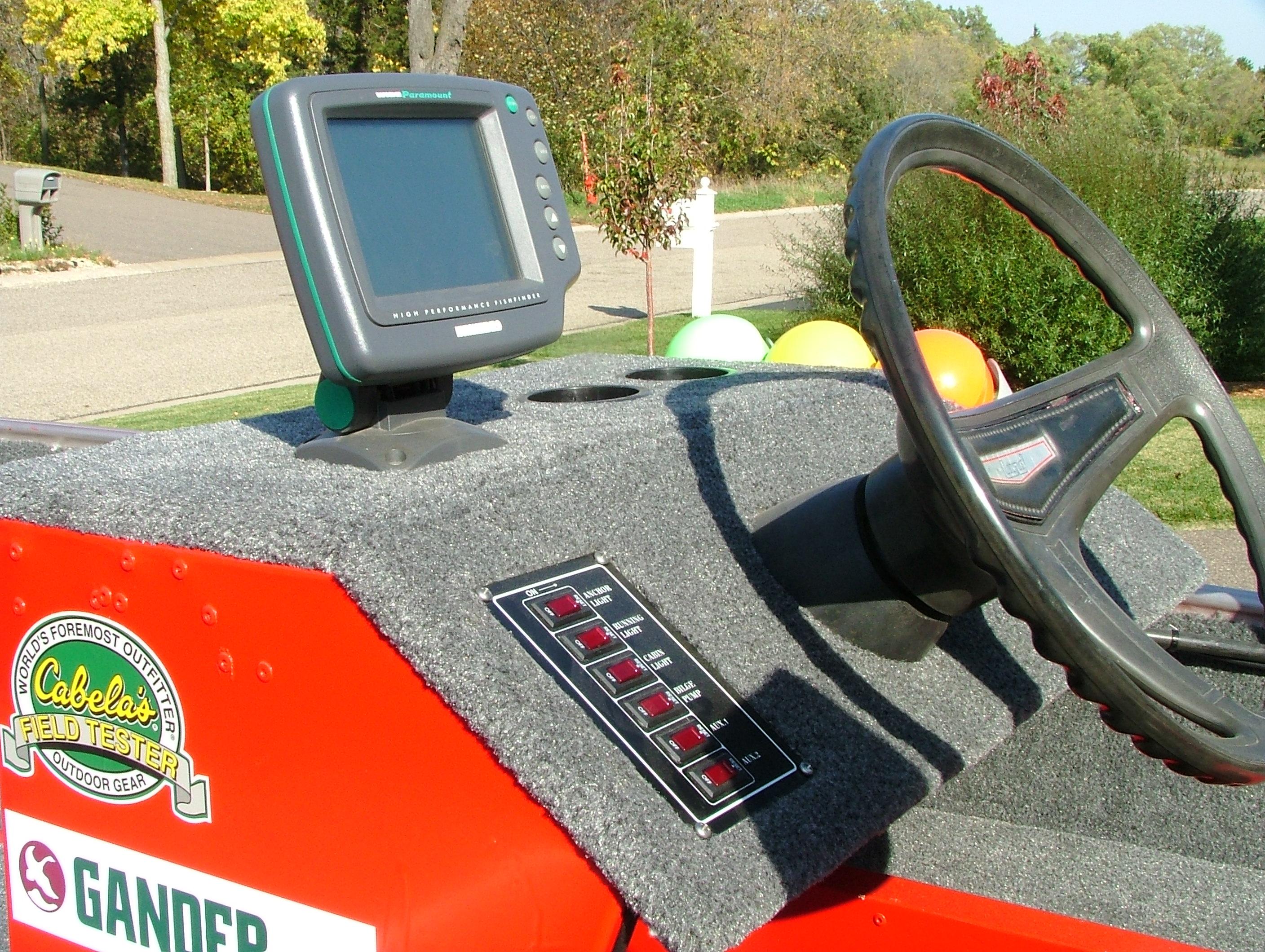 Here's a better view of the console. In this view you can see the new lighted switch panel, a couple of cupholders I added, and the way the top and dash face were reworked. I added some bracing and additional mounting points that really shored the console up.