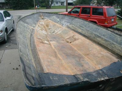 Foam, wood, and Transom removed. Used grinder to clean up hull and power washed.