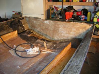 New transom fiberglassed in boat