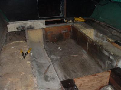 Got some of the foam removed on port side. Cleaned out old wood and sanded old glass. Will use silica to set new wood into cleaned out hole. Using BC 3/4" reg. ply. figure if I paint with epoxy and glass over it will last.