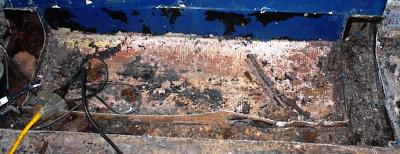 It took about 5 minutes to remove one entire seat base. All of the lumber in here is wet and totally rotten.