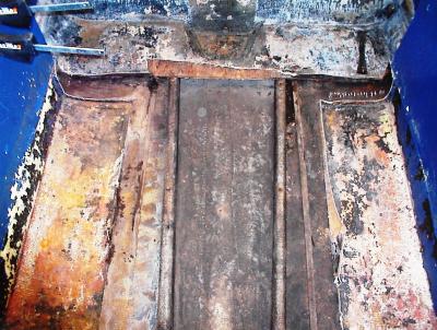 I have most of the junk cleaned out of the boat so you can see the stringers. This is a shot from the front seat looking to the rear with about a foot of floor left in place in front of the transom