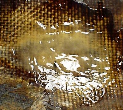 Well its not easy to see, but there are three layers of clothe in that epoxy glob. I used 30 min hardner and that was Too slow for a 40 degree work area. Even with my flood light to add heat to it I had to slide the patch up off the bottom of the hull several times before it jelled and stayed in place..