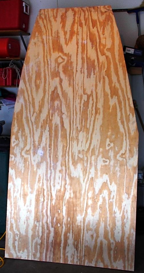 Once I was happy with the drywall based pattern, I transfered that to the sheet of 1/2 inch A/C exterior plywood and cut it out.. My sabersaw worked very well for this.