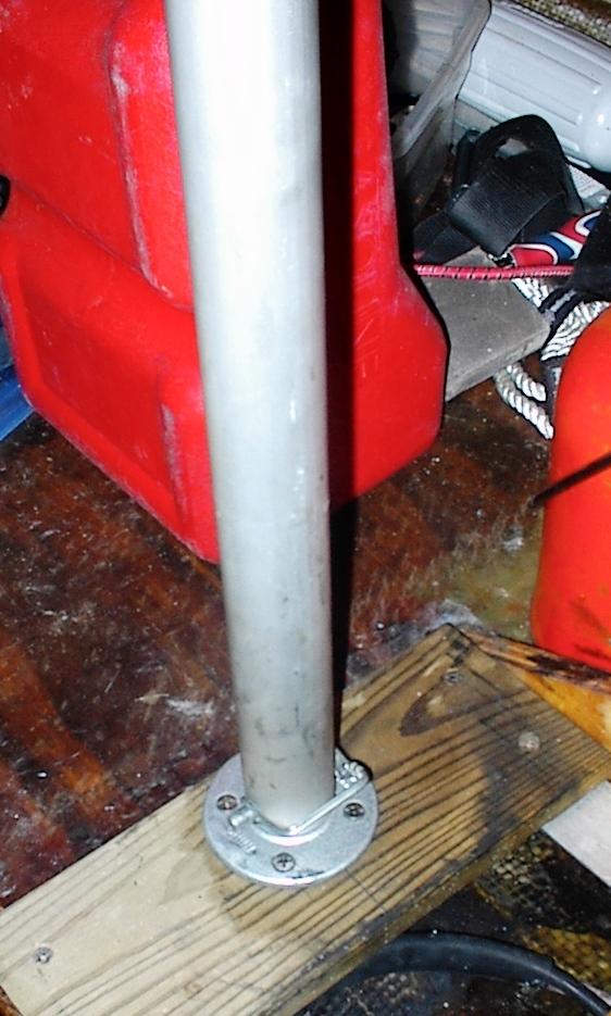 We had to cement a PVC pipe over the steel pipe nipple to make it correct size to fit inside of the ski pylon pole. We also had to cross drill the PVC and the pipe nipple for the locking pin that holds the pole in place.