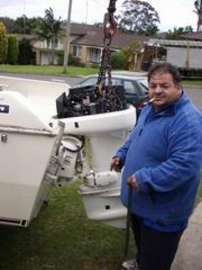 With the motor disconnected we had trouble adjusting the trim as we needed to tilt the motor to get to the bolts. This is my good looking mate Joe who eventually solved the problem.