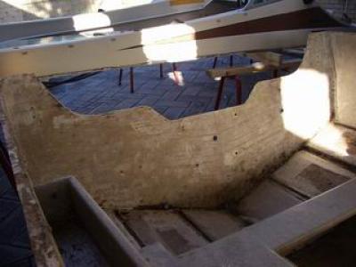 Today was spent tidying up yesterdays work. This included grinding all remaining timber from the transom and floor sections, cutting and grinding the bottom of where the stringers were and grinding off the gelcoat wherever I intend fiberglassing everything back in.