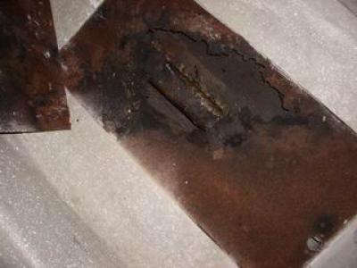 Up the front of the boat you can see the extent of the water damage. The front 6" under the floor was FILLED with what can only be described as mud. Dead set you could have grown veggies under there!!!!