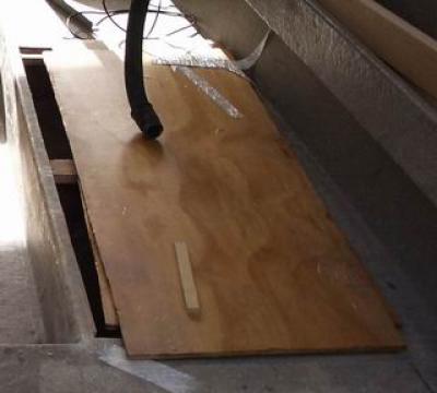I precut my fiberglass mat and laid my floor sections on sawhorses, got all my tools ready and poured Acetone into a container ready for cleanup. I poured 1.5 litres of resin into a container (thinking this will be plenty) and was about to add the catalyst when I realised I had no mixing stick and for the life of me I couldn't find an appropriate piece of scrap timber (in a panic I ended up using the flat tool you use to undo the flanges on an angle grinder!).