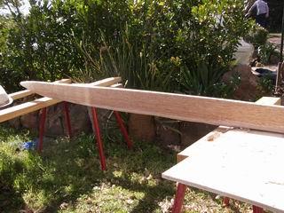 It was at this point I realised I had not taken the drop on the keel at the deepest part of the 'v' into consideration. Basically the timber I bought for the keel stringer is too short. I don't normally make assumptions but in this case I got caught out big time. Anyway I had to get another piece of timber made and I joined the two together with a layer of fiberglass.