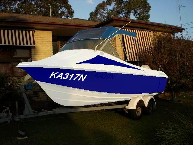 White undersides & deck with blue gunwales