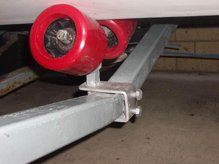 Now the new red rollers are slightly smaller in diameter than the old black ones meaning I need to readjust the wobble roller brackets otherwise some of the rollers don't support the hull. That's easy except I snapped one bolt off the bracket holding the roller stem meaning it was stuck. I ended up having to hacksaw off the old bracket (and cut through a galvanised bolt as well) and mount a new bracket. Three hours later and it's all done!