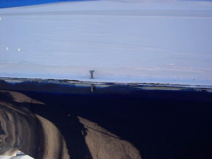 I put Epoxy along the flange joint at the deck/hull join, lowered the deck and secured the deck in place with stainles screws. To pull the two parts together I used long screws which I later cut the tails off with a grinder. For the rest I used small screws that only just poked their heads through the underside of the join.