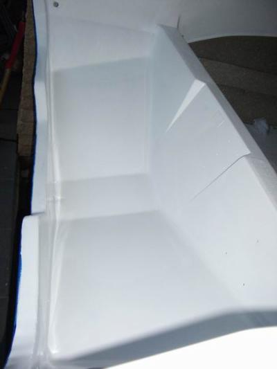 I repainted inside the back of the splashwell. The top of the transom will be covered with an aluminium trim.
