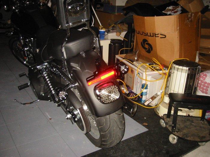 Here is a picture of the new rear end with smoke lens LED turn signals and tail light (all glow red).