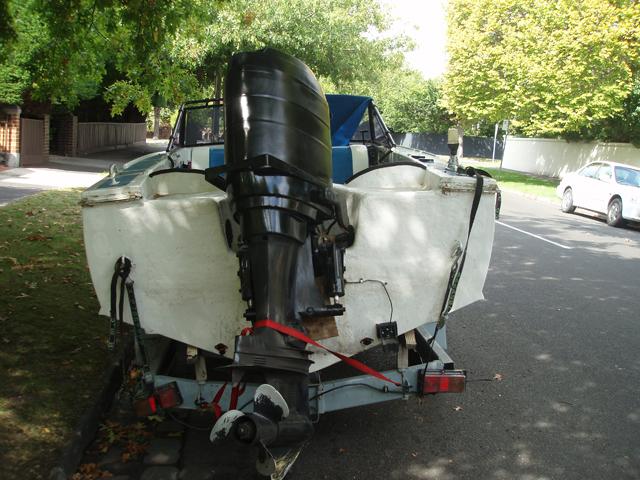 Here is the finished transom with a VERY rough coat of flowcoat. In winter the entire boat will be restored so i figured a rough coat and make the most of the remaining warm water.