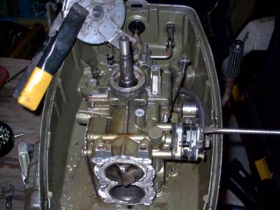 Simply remove the two slot screws near the centre of the fuel pump. There's no need to remove the top and bottom screws, which actually hold the pump together. You may re-use the fat fuel pump gasket.