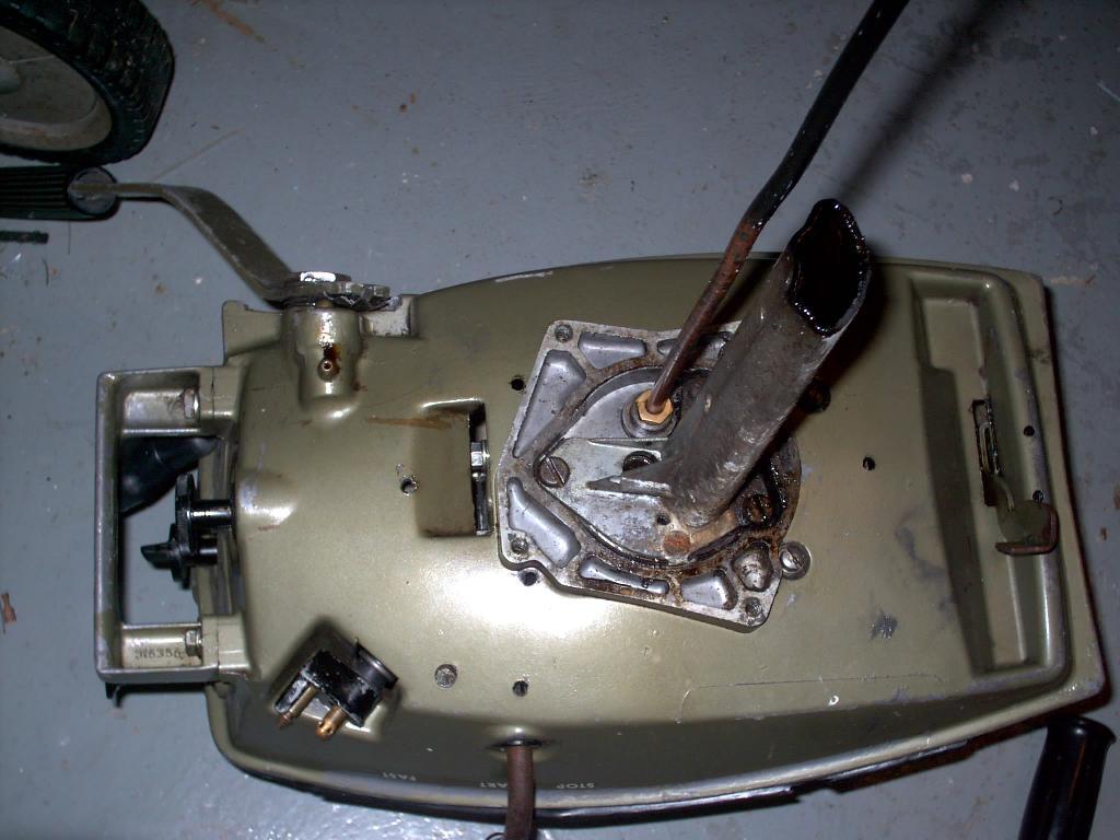 With the engine/lower cowling assembly off you can proceed to remove the engine. First, the long exhaust tuner will have to come off. There's some screws underneath it you'll have to get to. At this point you're faced with removing some nasty 1/4" slot screws that are (doubtless) rusted into place.