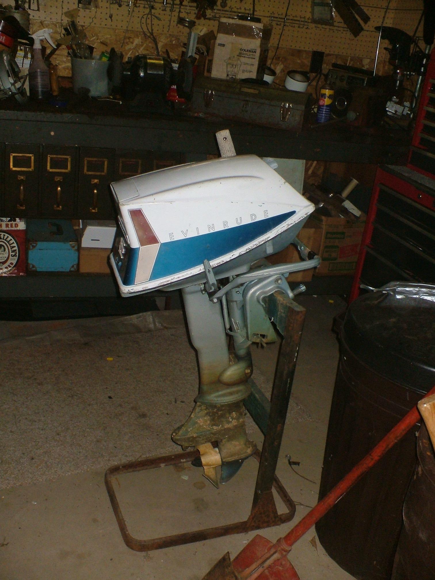 There is the motor before I began to work on it. It runs ok mechanicaly. I want to rebuilt the carb and clean the ignition system a bit. Seems to run great otherwise. The lower leg had been sitting in the water quite some time, and the rest of it is badly faded from the sun.
