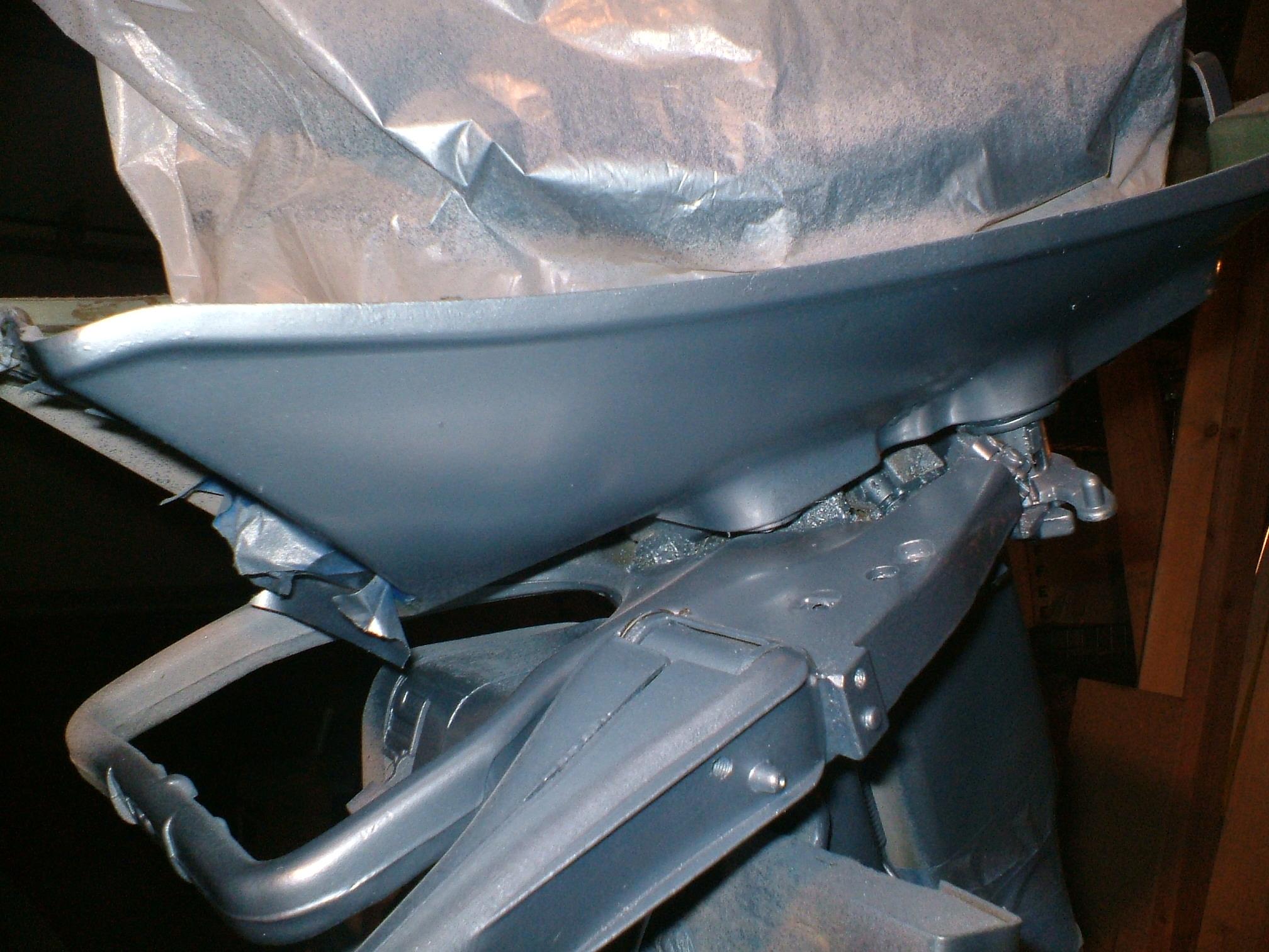 I still have not gotten the zinc chromate needed for the parts of the leg that will be below the waterline. I have started the upper leg and lower pan.