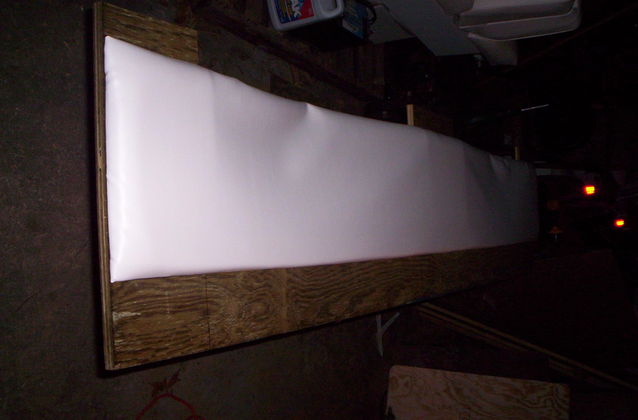 Here is the new upholstery part in place on the gunwale assembly..finished being upholstered on the three sides, but still not cutout. The whole upholstery process is pretty much the same..just make sure the vinyl is tight and smooth with each staple you put in.