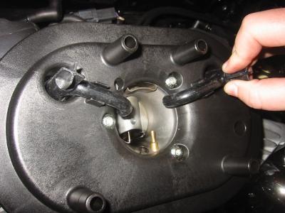 The head breather vent tubes simply slip over the head breather bolts. Position the tubes to fit in the plastic "troughs" and to point into the throat of the carburetor.