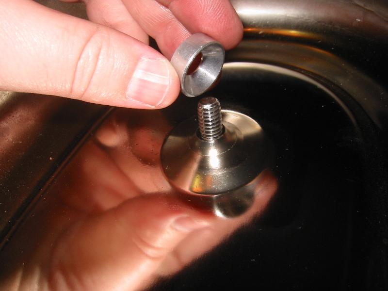 Place the cover screws in the cover and place a spacer over each. Put the concave side towards the cover. This should appear obvious since the cover has a mating convex surface where these spacers go. (NOTE: If you want to use that "Screamin' Eagle cover insert, you need to place it on the front of the cover before putting the screws in on this step.)