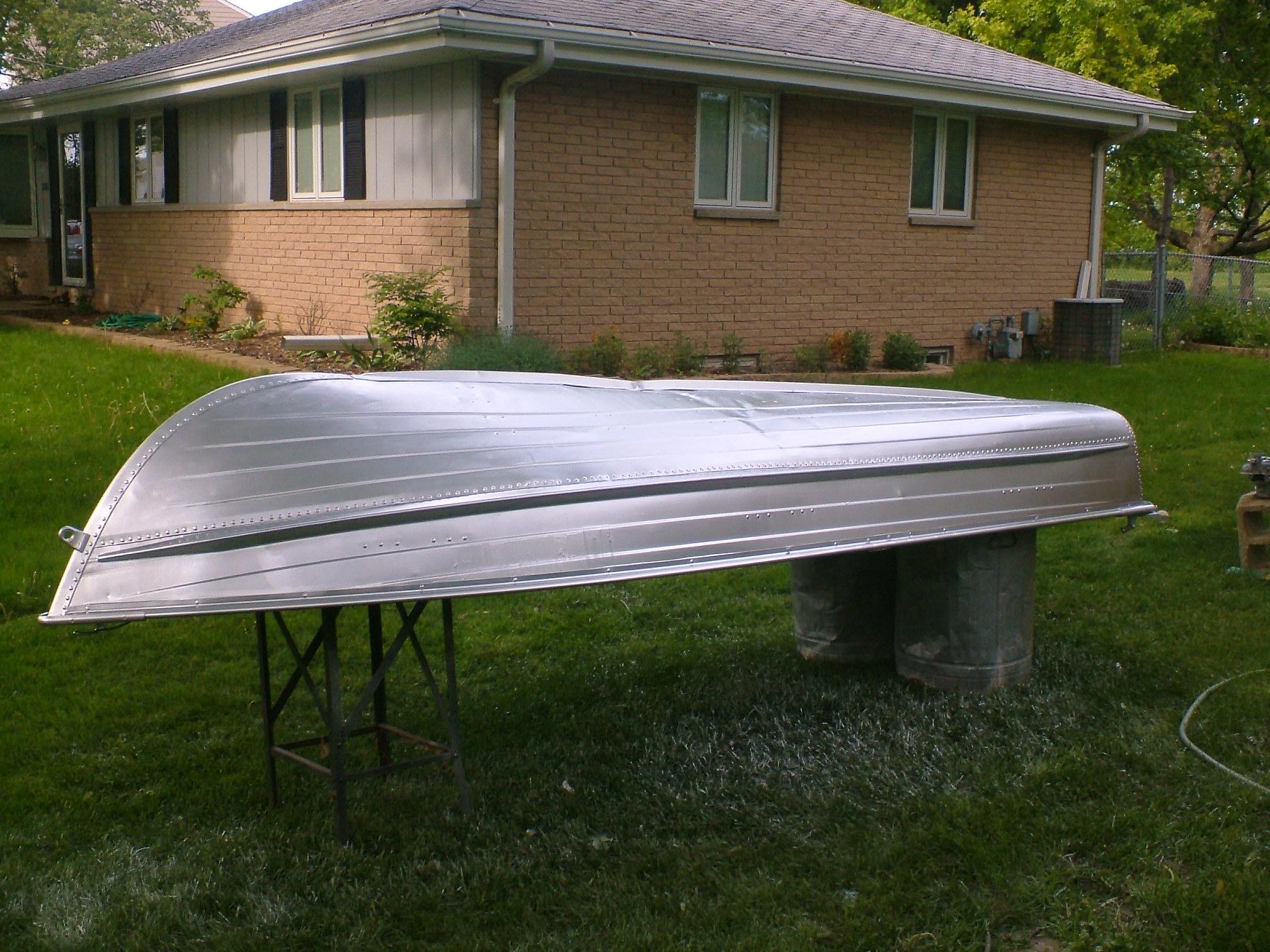 I painted the boat an aluminum color. I used a primer in the areas where metal was showing.(left over chromate from the engine)