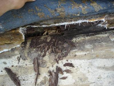 Port side where floor meets the hull.. totally rotted out.