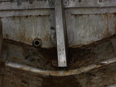 Transom support looks like it should be removed, straightened, and bolted back in after the transom is repaired