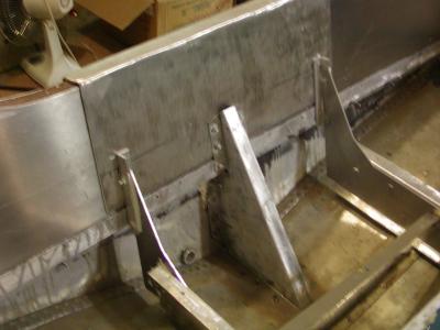 Struts were added to the aluminum stringers and bolted to the transom. Notice the new transom engine support plate.