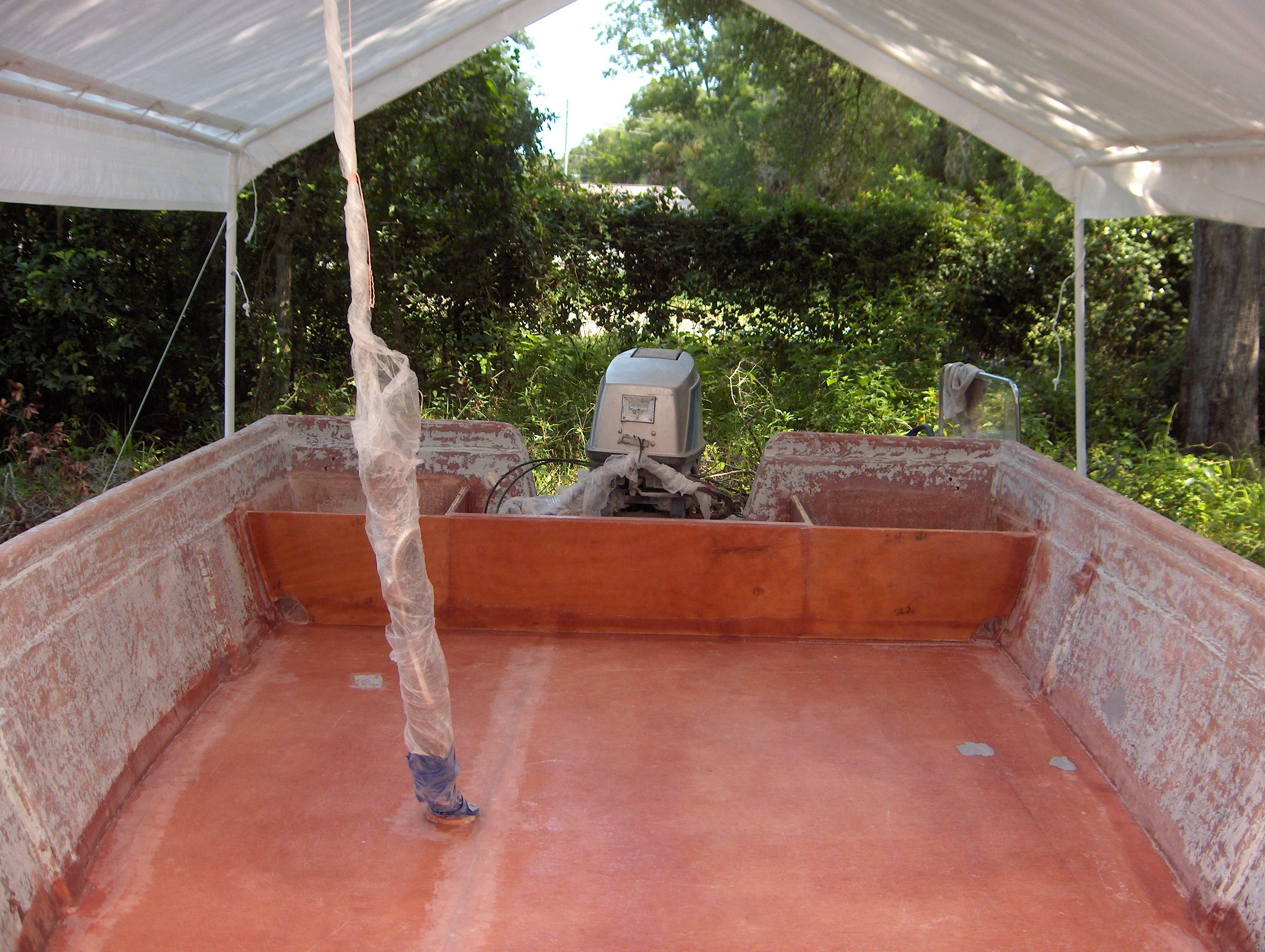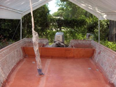 Floor glassed in. I also reconfigured the storage boxes against the transom