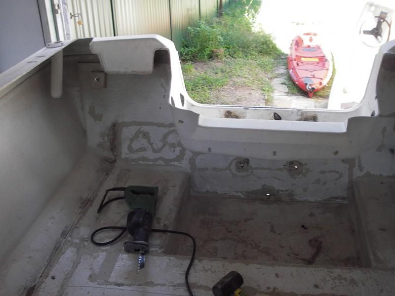 With the help of a hired sabre saw, gunnels have been cleaned up and the rear moldings removed.