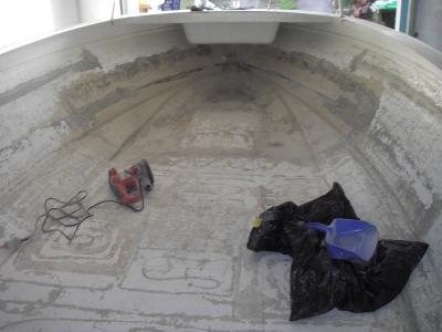 Last vestiges of front decks and pockets have been ground and sanded flush.