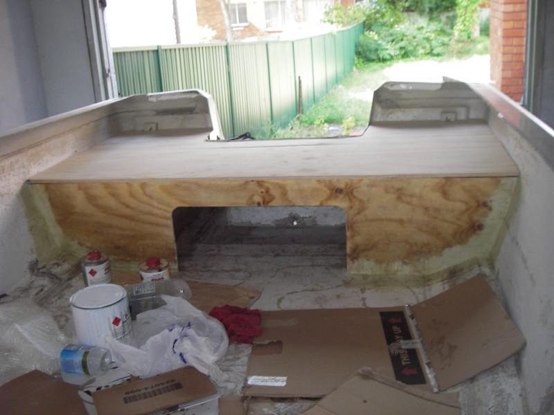 With the rear deck cut in half (side-to-side) the deck installs easily, and is looking good. Deck is 15mm CD ply, as is the frontmost of the rear supports.