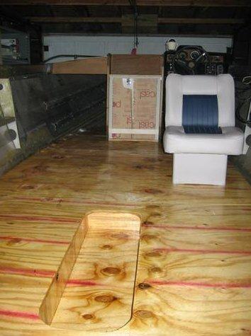 Floor is epoxied and placed to confirm fit. Insert will be a Teak floor storage - drains to bilge.