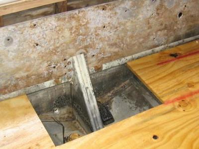 Transom plate looks also looks like Swiss Cheese due to the previos owners use of angle iron and a kicker plate. What a mess...