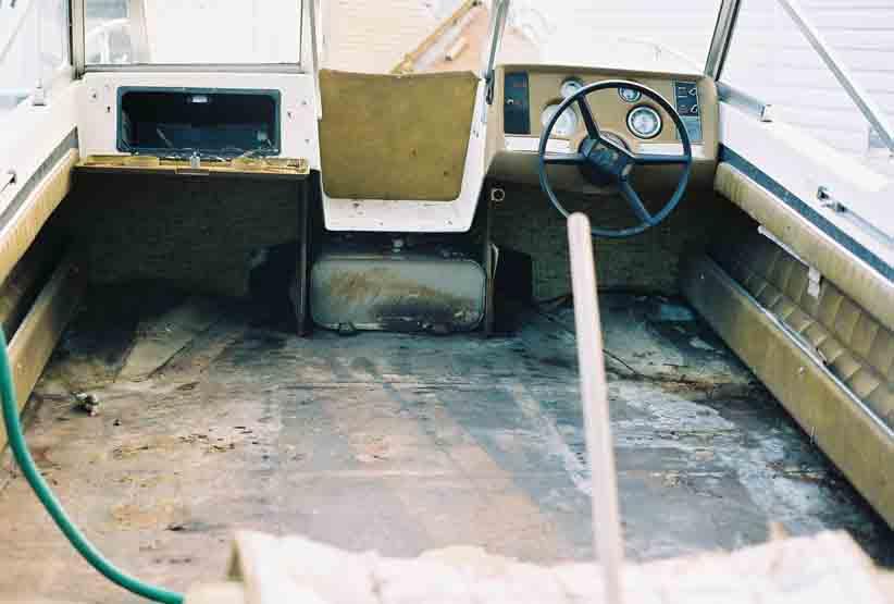 lots of soft spots in the floor here. Glastron simply laid fiberglass over plywood for the floor