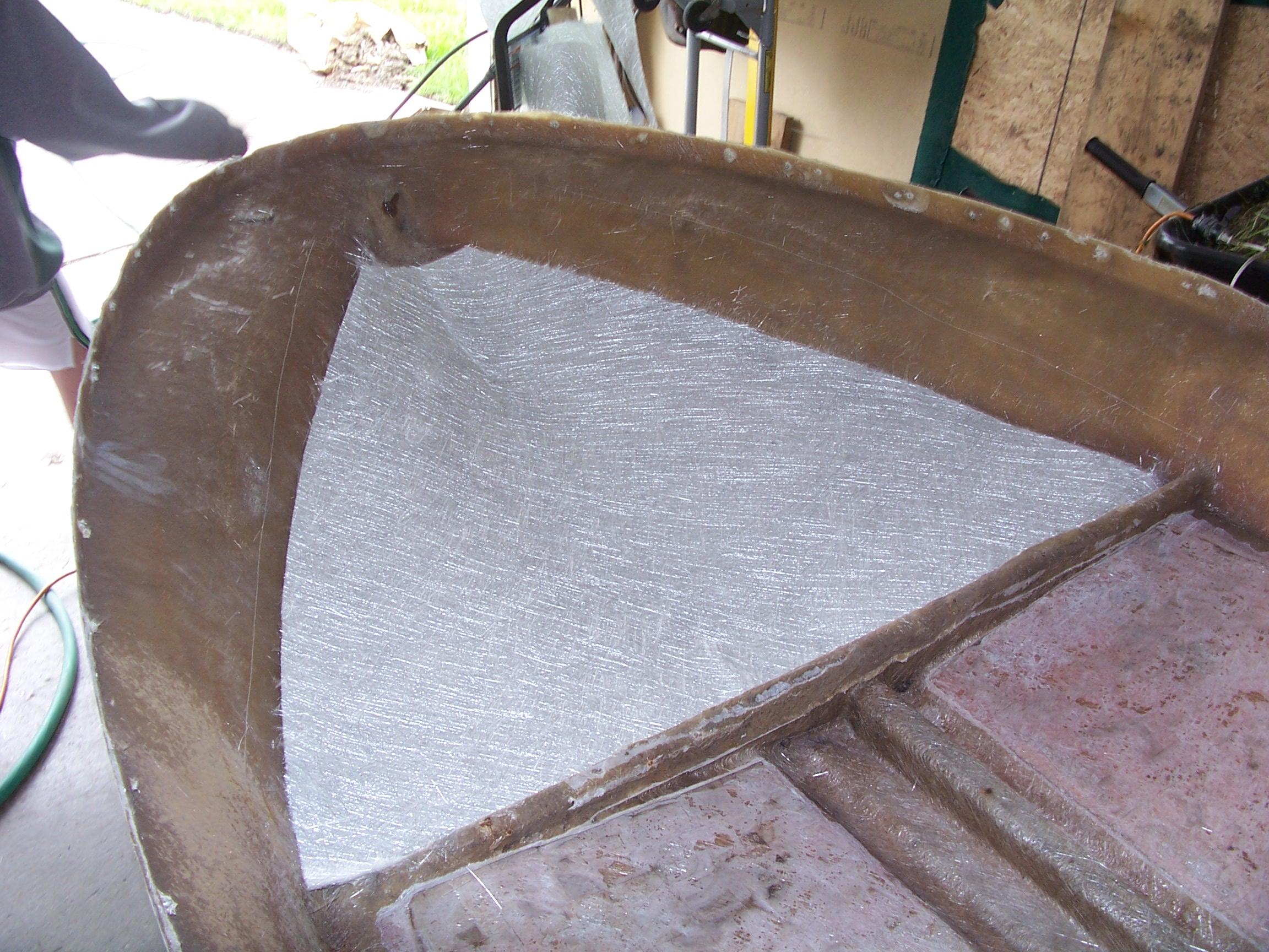 Cut fiberglass mat and resin in place.