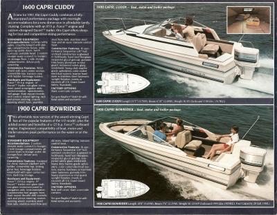 Here is a page from the original sales brochure. Some nice specs there, like weight and overall length. Its a shame that no manufacturer, even Bayliner, makes a small cuddy like this anymore.