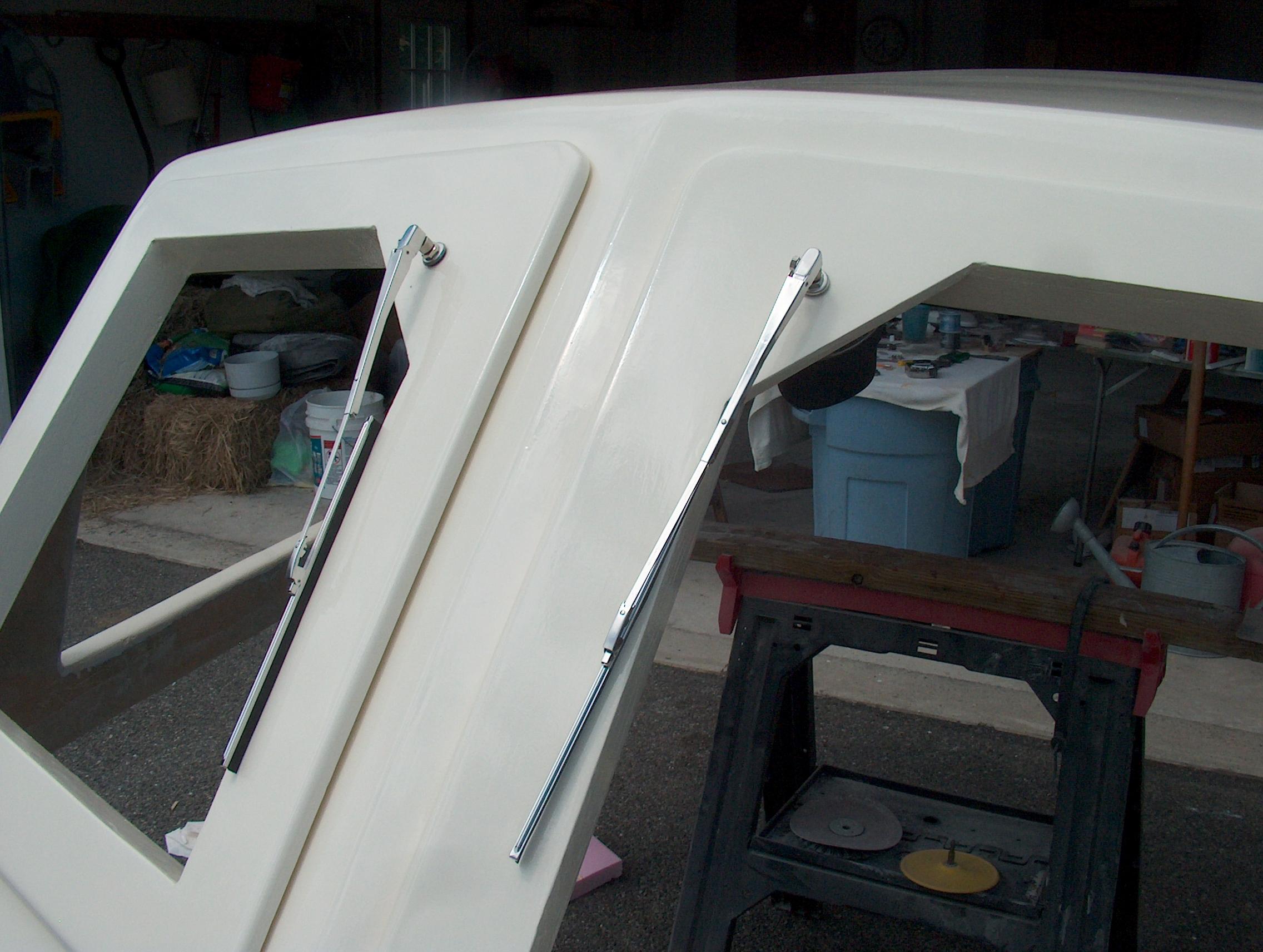 Window frames with the wiper arms mounted. No glass yet.