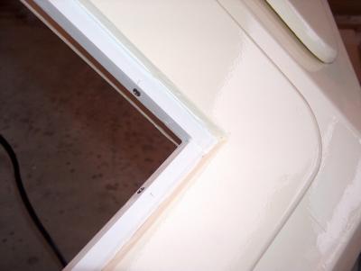The support for the windshield glass was made from PVC board. Ripped 1/2" wide strips off of a 1x4 PVC board. Then routered the back side over so it looks nice from inside and no sharp corners. Attached with 3M 4200 and stainless screws