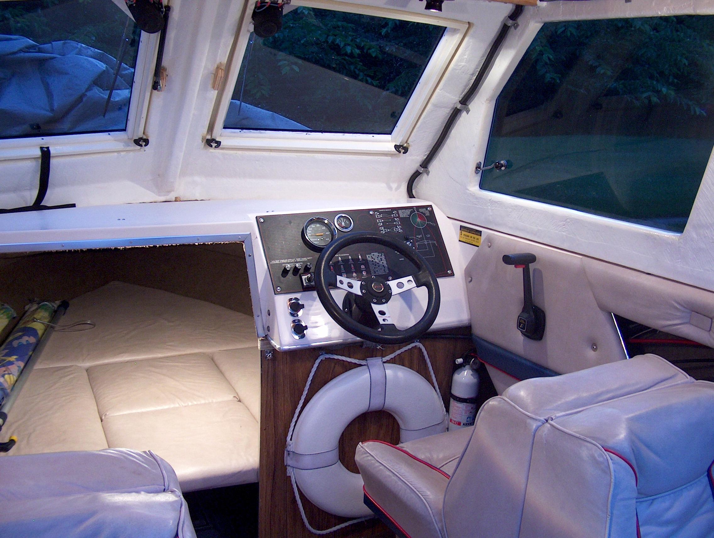 Cuddy and Helm light. Put hanger for the throwable PDF ring right under the steering wheel. Very convenient in an emergency. Need to add about 100 ft of 1/4" nylon safety line too. Can't be messing around with anchor line in an emergency when someone's life is in danger. 1/4" is more than enough to haul someone in.