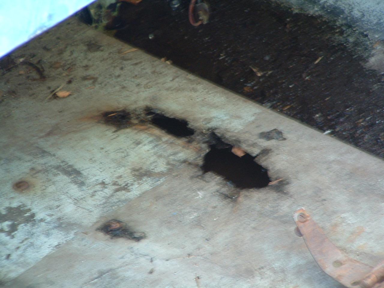 Hole in floor. I can see water in it so I know the stringers need to be replaced. No foam???