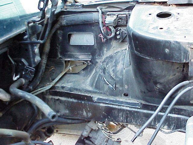 The tray was cut out with a cut off wheel. This makes room for a few more holes that are required for hoses and the water pump.