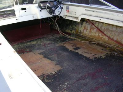 April 2006 - Some other projects got in the way of getting much done over the winter but I start anew in the spring of 2006. The interior is pretty much gutted and the floor is exposed.
