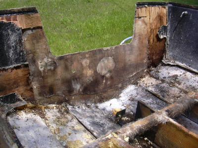 Starting to clean up the transom area. I cut out the last foot or so of the two outside stringers (well rotted!) to give full access to the transom. Lots of belt sanding and grinding to come...